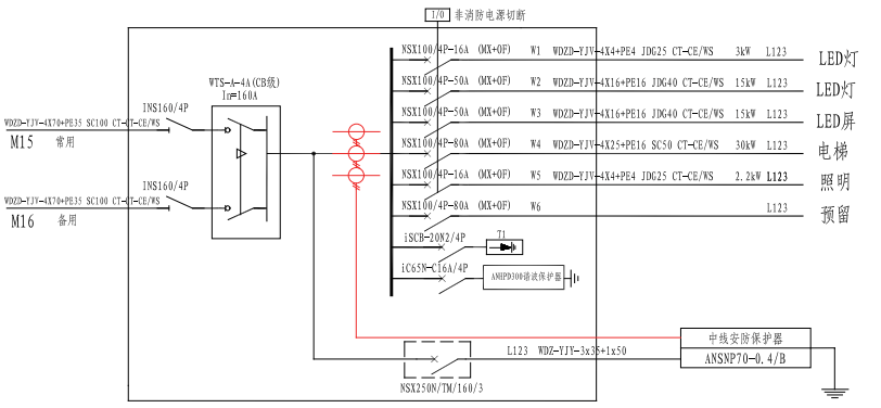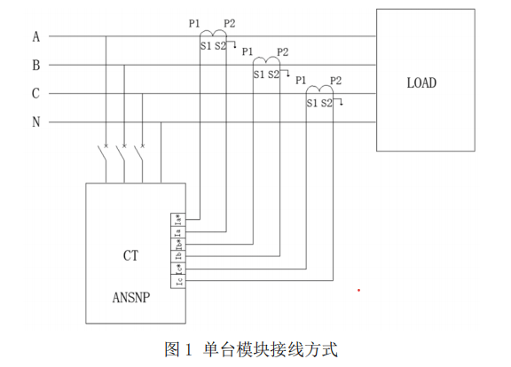 ANSNP系列中線安防保護器采用并聯接入方式,安裝在含諧波負載的低壓配電系統中。其核心工作原理可概括為“實時檢測-指令計算-反向補償”三個環節。